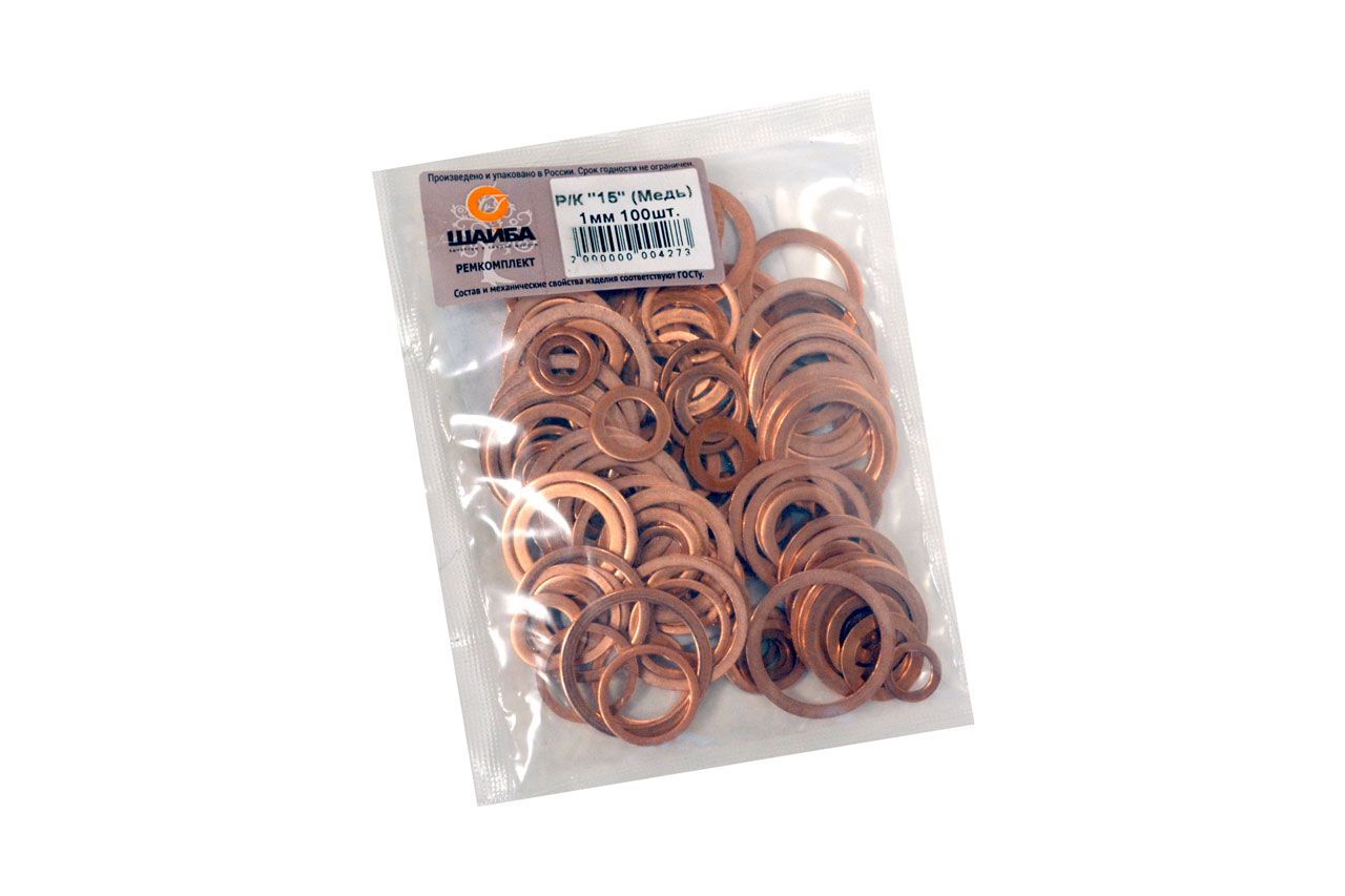 Набор медных шайб в комплекте "15" толщина 1 мм