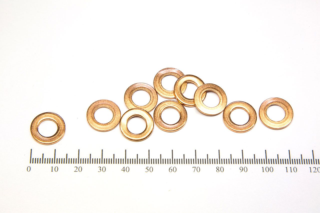 Медные шайбы применяют для уплотнения в топливных насосах, двигателях, масляных насосах, гидравлических, пневматических соединениях. Шайба имеет высокую пластичность и высокую стойкость против коррозии, это позволяет применять в агрегатах высокого давления. Физико-химические свойства меди обеспечивают работоспособность шайб в различных агрессивных средах при больших амплитудах рабочих температур.